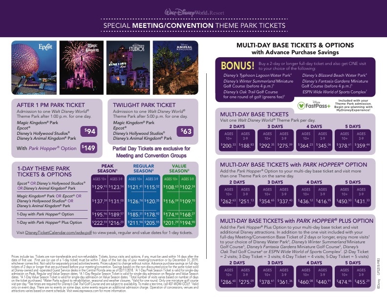 These specially priced Disney Tickets purchased from our site will be valid for use from October 24th – November 10th (7 Days Pre and 7 Days Post our meeting). To receive discounted tickets, you must purchase your Disney Tickets before October 30, 2019! Just like Cinderella, our website will lose its magic by midnight.